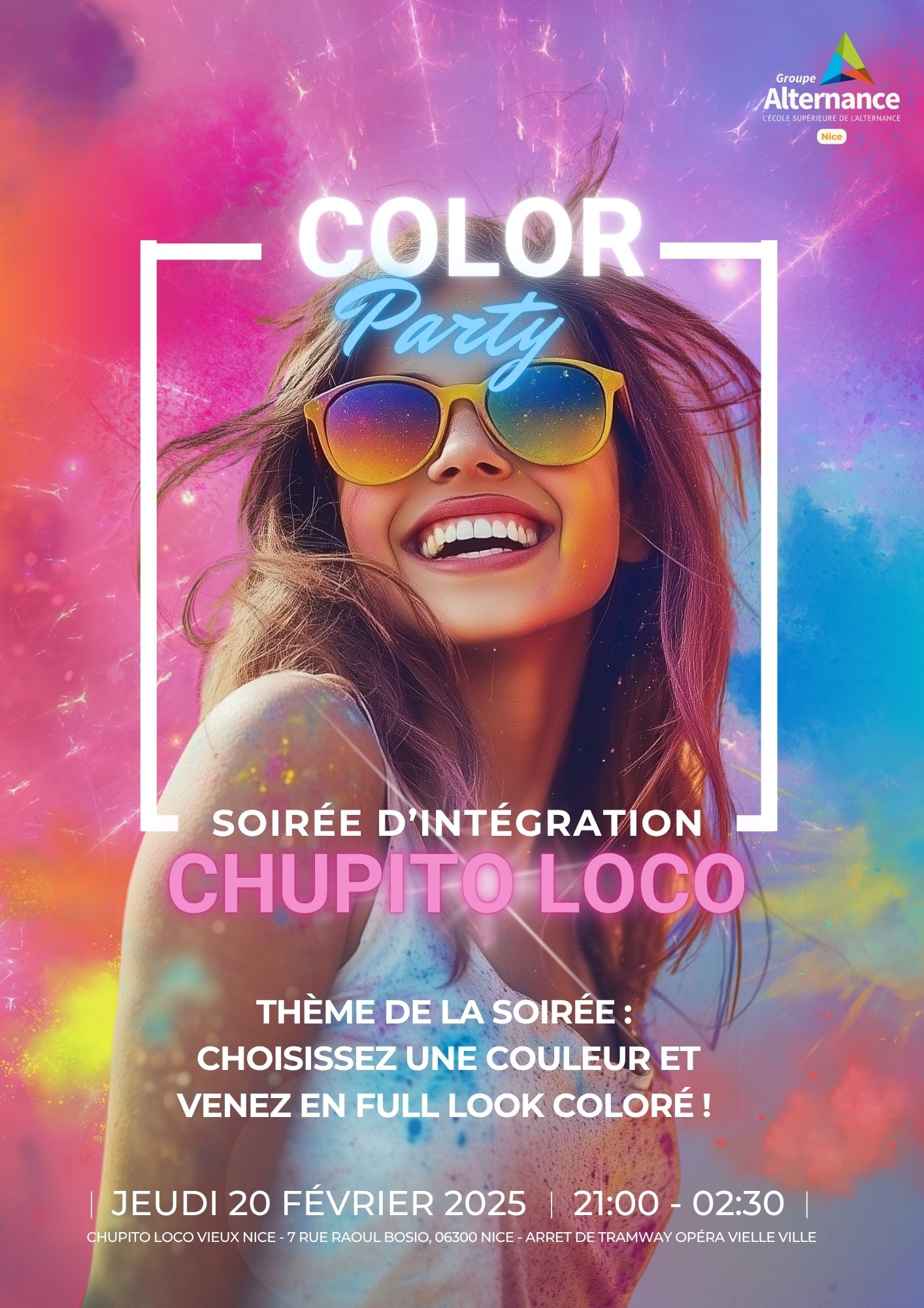 Le BDE de Groupe Alternance Nice t’invite à une soirée explosive sous le signe de la couleur, de la musique… et de la folie collective 🎉