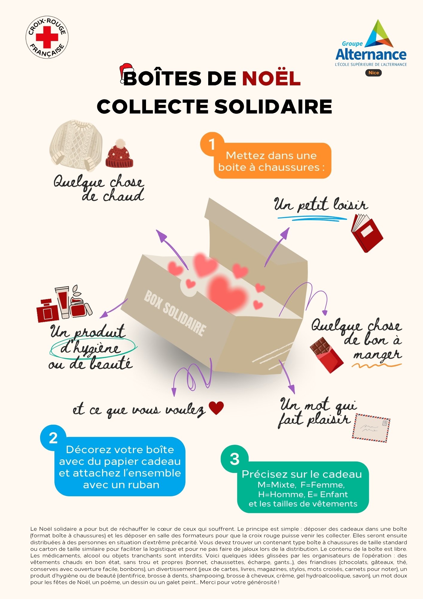 En partenariat avec la Croix-Rouge, du 25 novembre au 13 décembre 2024, le BDE lance une collecte de Boîtes de Noël pour apporter un peu de chaleur à ceux qui en ont besoin pendant les fêtes.