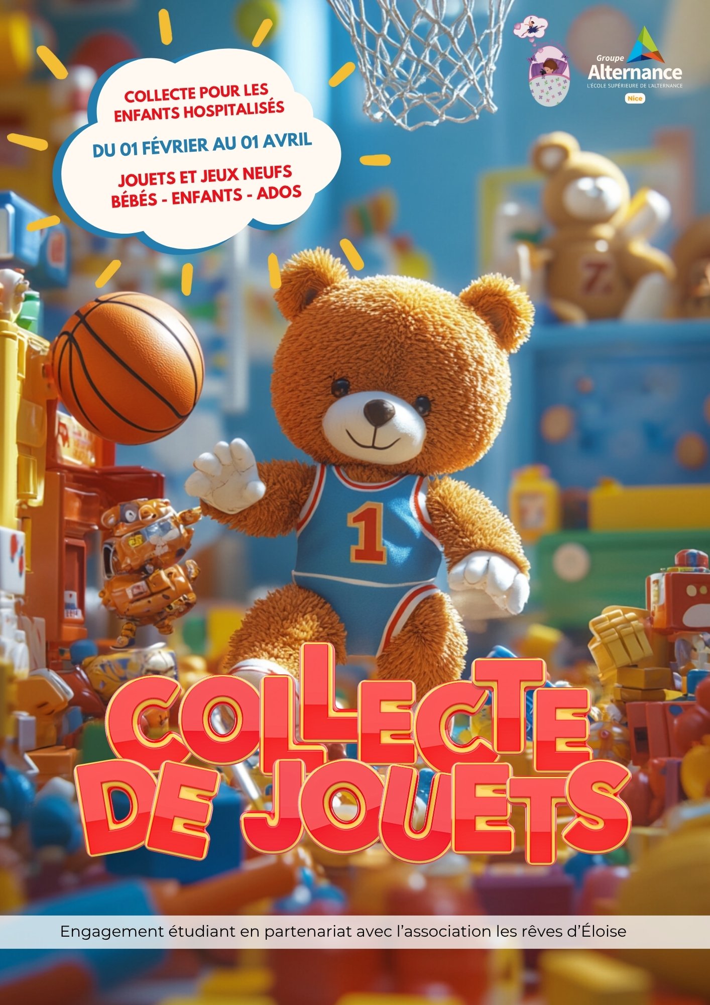 Le BDE de Groupe Alternance Nice organise une grande collecte de jouets au profit de l’association Les Rêves d’Éloïse pour les enfants et adolescents hospitalisés.