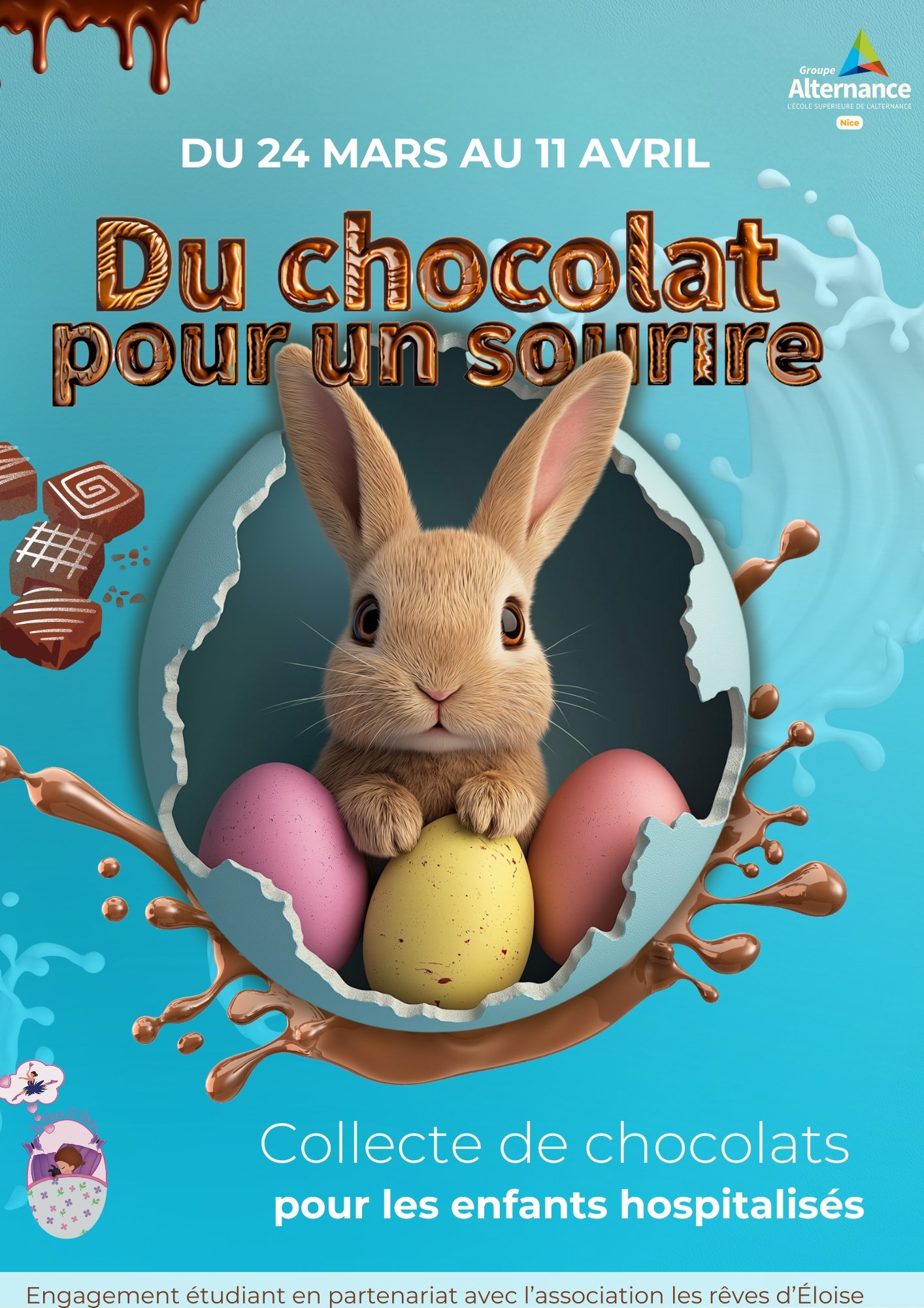 À l’occasion de Pâques, le BDE de Groupe Alternance Nice s’associe à l’association Les Rêves d’Éloïse pour apporter un peu de réconfort et de joie aux enfants hospitalisés.